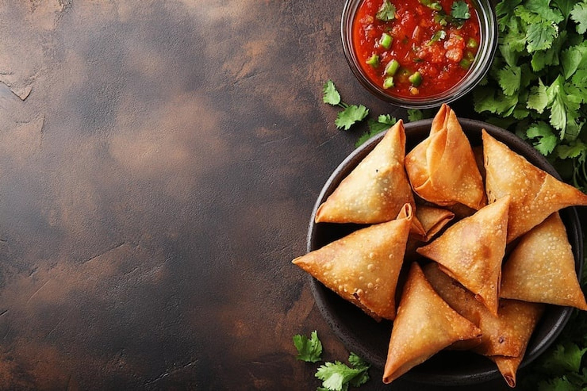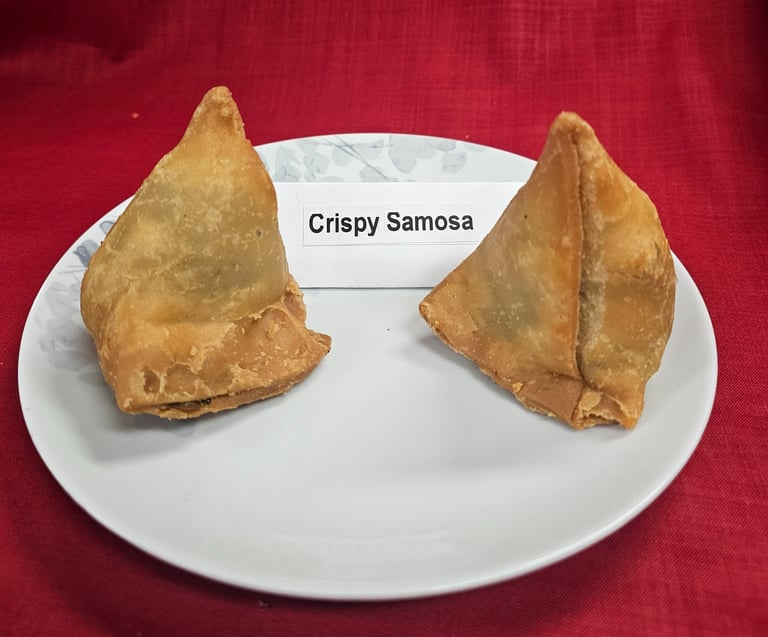 Crispy samosas are freshly prepared with a perfectly golden crust that delivers a satisfying crunch in every bite.