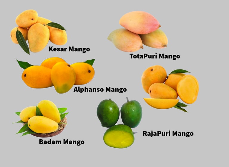 Handpicked fresh Indian Mangoes like Kesar Mango, Alphanso Mango, Tota Puri Mango, pickle special Rajapuri mango, etc sourced locally and from India.